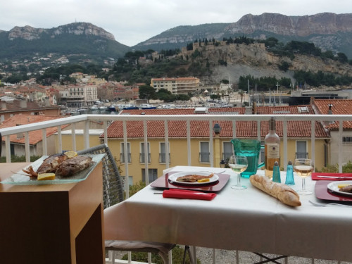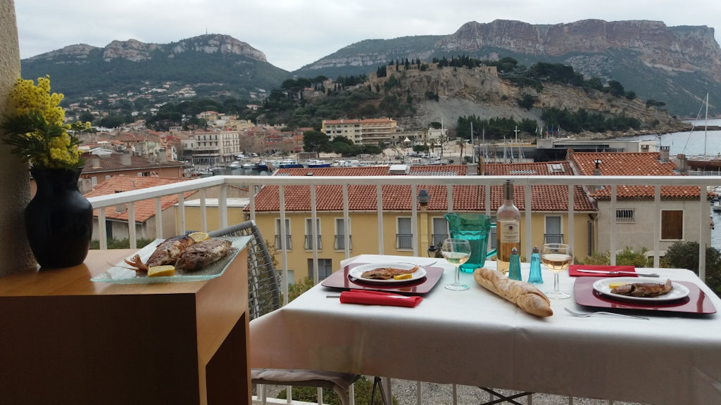 Nous proposons à nos hôtes qui arrivent en train de venir les chercher à leur arrivée en gare de Cassis. Nous faisons un petit détour par la route des crêtes afin de leur faire admirer Cassis du haut du cap Canaille.