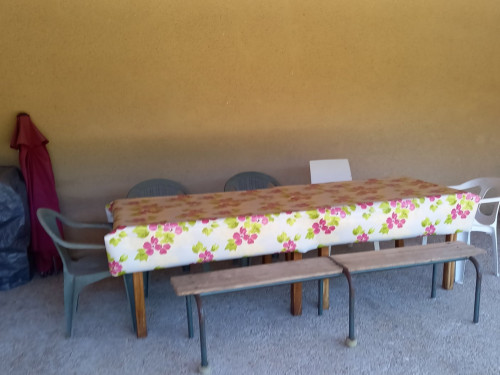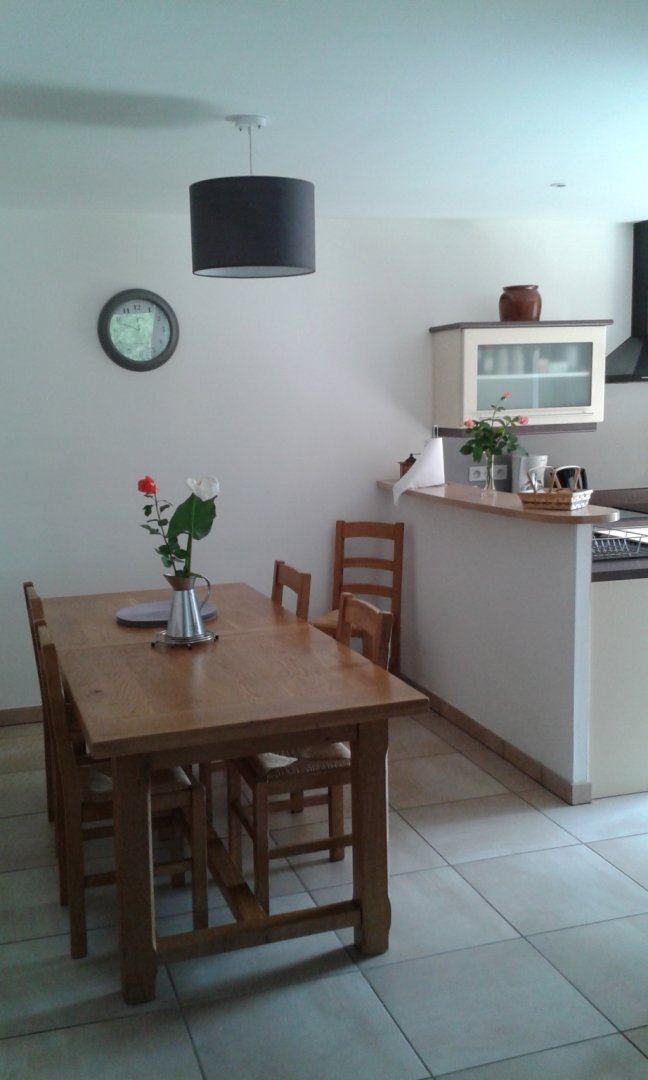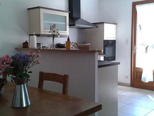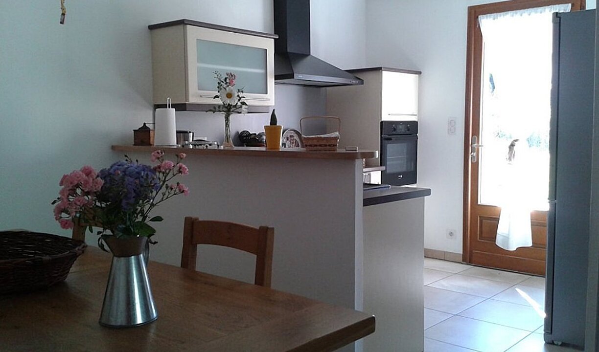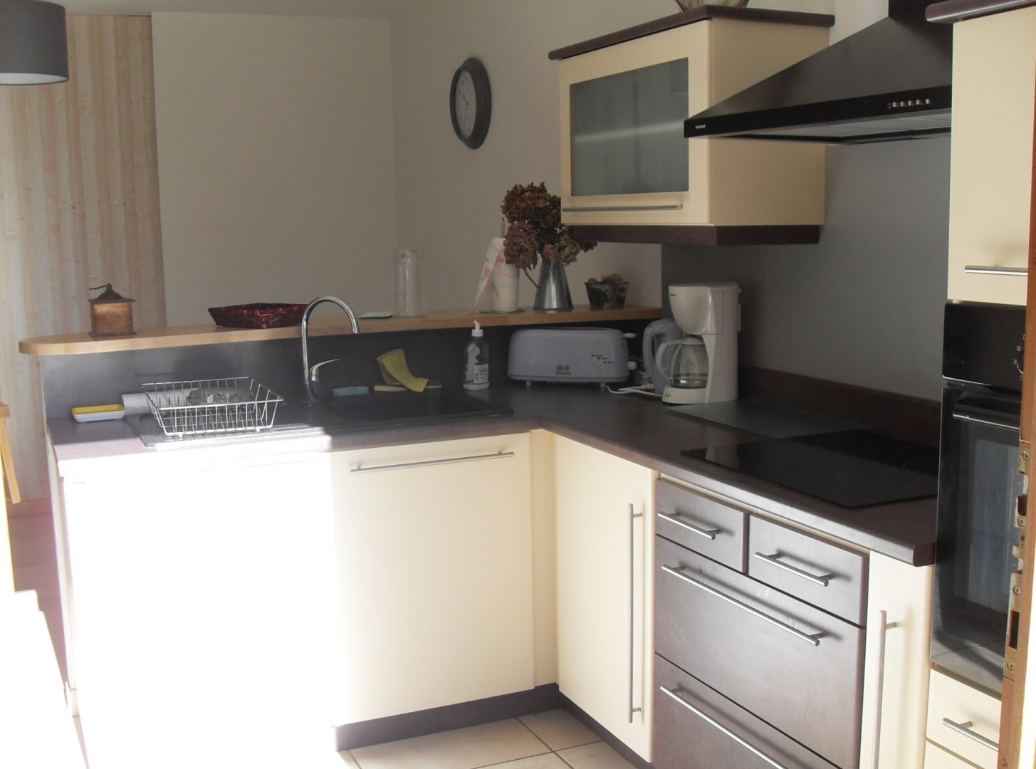 – une cuisine ouverte équipée (Four, plaques induction, frigo-congélateur, lave vaisselle, cafetière, bouilloire, cuit-vapeur, grille pain…) donnant sur 2 terrasses indépendantes avec salon de jardin et barbecue
