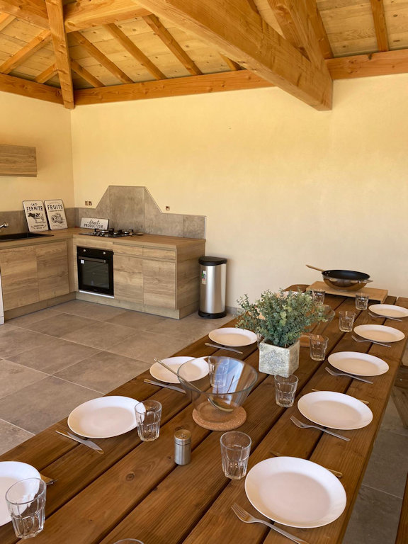 Cécile vous accueillera à Ruoms, à 10 min de Vallon-Pont-d'Arc, dans une ambiance familiale, dans l'un des 3 chalets, climatisation, piscine clôturée avec transats, terrasse ombragée, accès direct Via Ardèche (vélo). Dans un cadre naturel, arboré et offrant une large gamme d'activités et de sites touristiques à proximité pour un séjour agréable et reposant en Ardèche.
