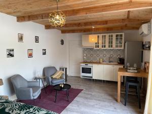 Cet appartement avec climatisation compte un coin salon, une cuisine avec un réfrigérateur et une télévision à écran plat. Des serviettes et du linge de lit sont mis à votre disposition.
