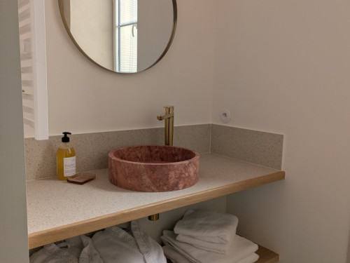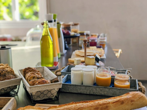 Pour rendre votre séjour encore plus agréable, nous vous proposons un service de petit-déjeuner en chambre (inclus). Vous gardez également l’accès à la piscine partagée et aux espaces communs de la maison : la bibliothèque baignée de lumière, le salon de jeux, et le préau équipé pour des instants conviviaux.