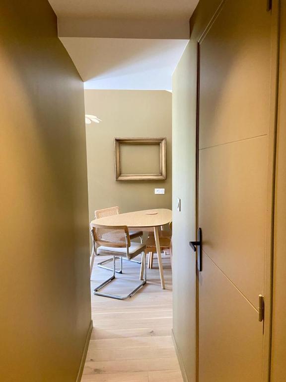 The holiday home with a terrace and pool views features 1 bedroom, a living room, a flat-screen TV, an equipped kitchen with a dishwasher and an oven, and 1 bathroom with a shower. Guests can enjoy an ambient stay in their soundproof room with parquet floors and a fireplace. The property has an outdoor dining area.
