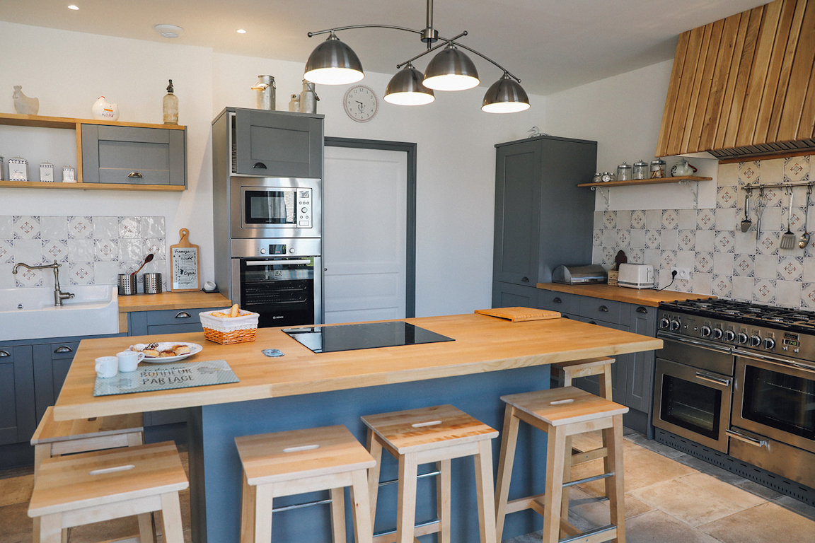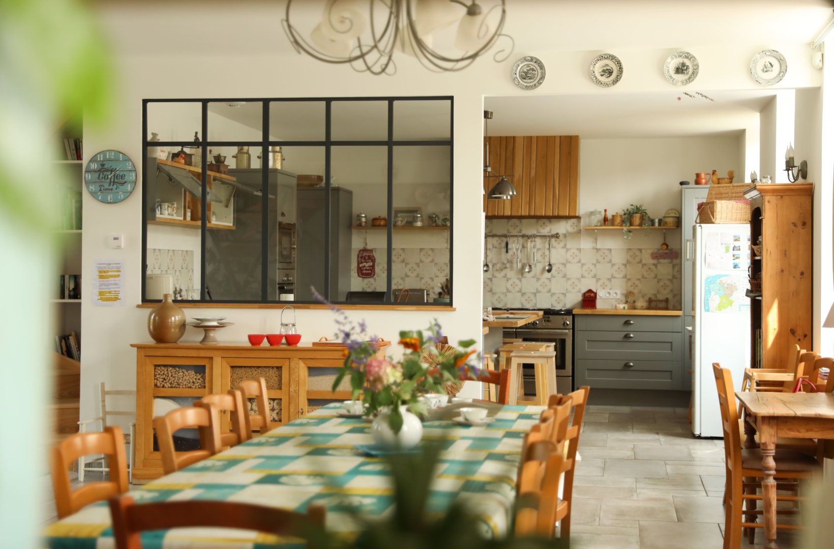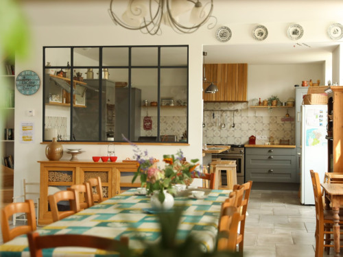 La cuisine est équipée pour cuisiner les produits du terroir local (un grand piano de cuisson (grill, wok), une plaque à induction, 4 fours et un micro ondes), une chambre au rdc avec sa salle d'eau PMR, à l'étage, 4 autres chambres spacieuses disposant toutes d'une salle d'eau ou d'une salle de bain, et décorées avec charme.