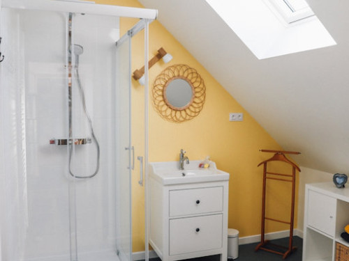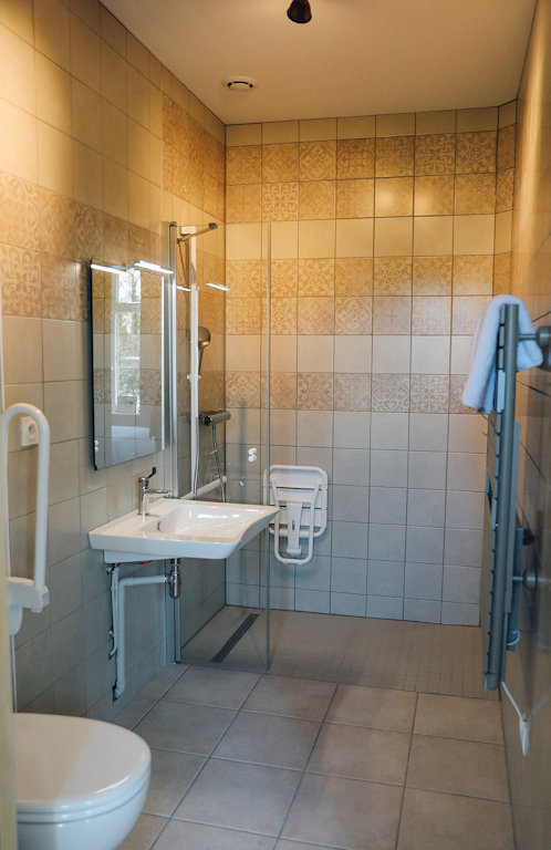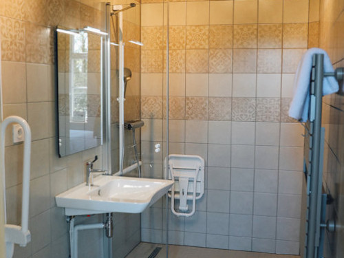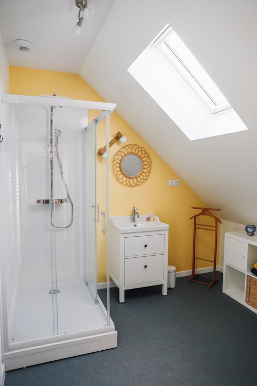 Tout le rez de chaussée est prévu pour l'accueil des personnes à mobilité réduite, la pièce à vivre est vaste et lumineuse et permet de bons repas en famille ou entr'amis.