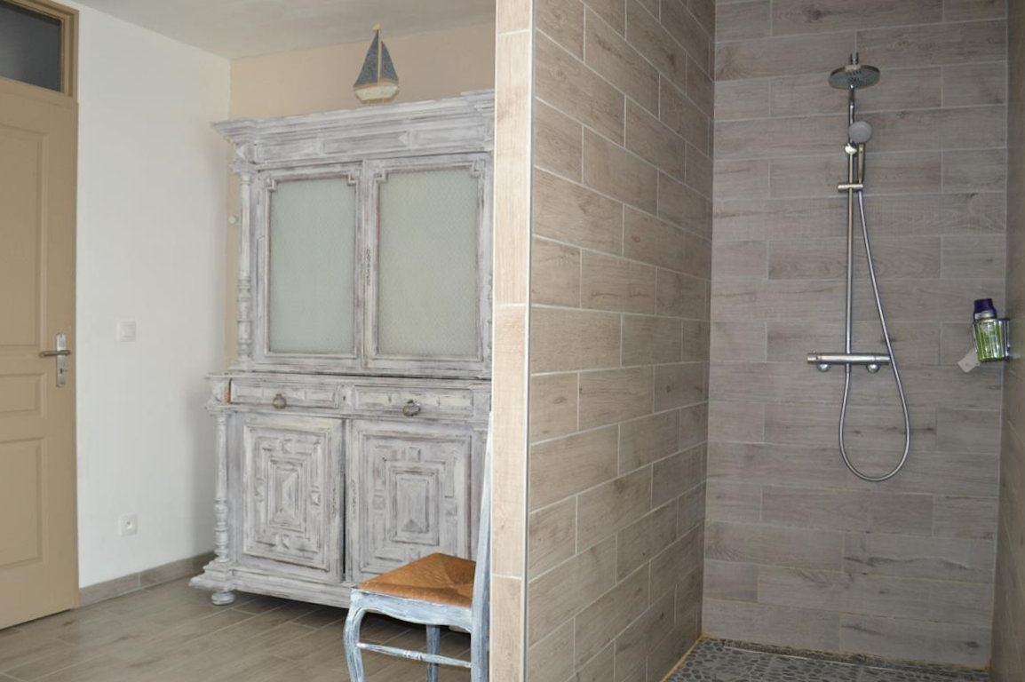 La chambre St Emilion est composée d’un lit en 160x200 et de deux lits d’une personne et d’une terrasse privative ombragée.