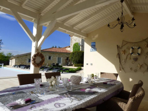 De votre gîte, vous profiterez de la vue magnifique sur les collines et les champs environnants pour prendre vos petits déjeuners ou vous prélassez au bord de la piscine chauffée (10 x 5 m) ouverte d'avril à octobre et ensoleillée toute la journée.