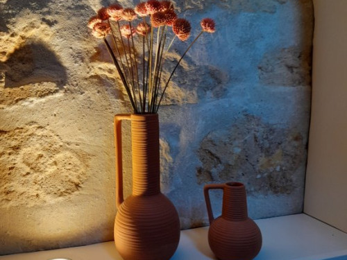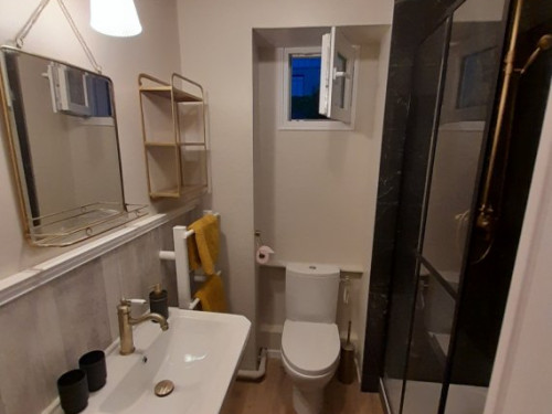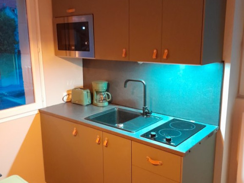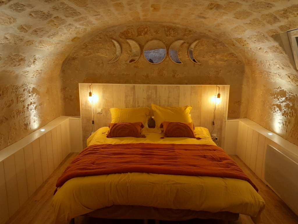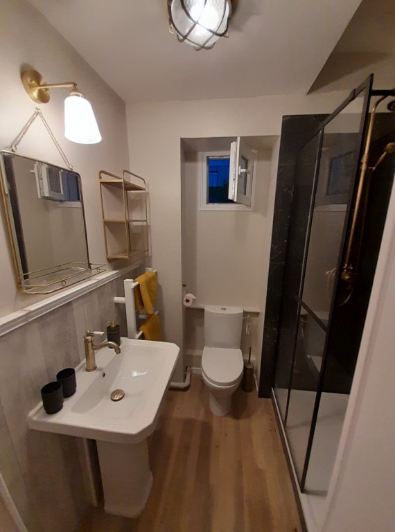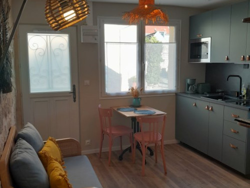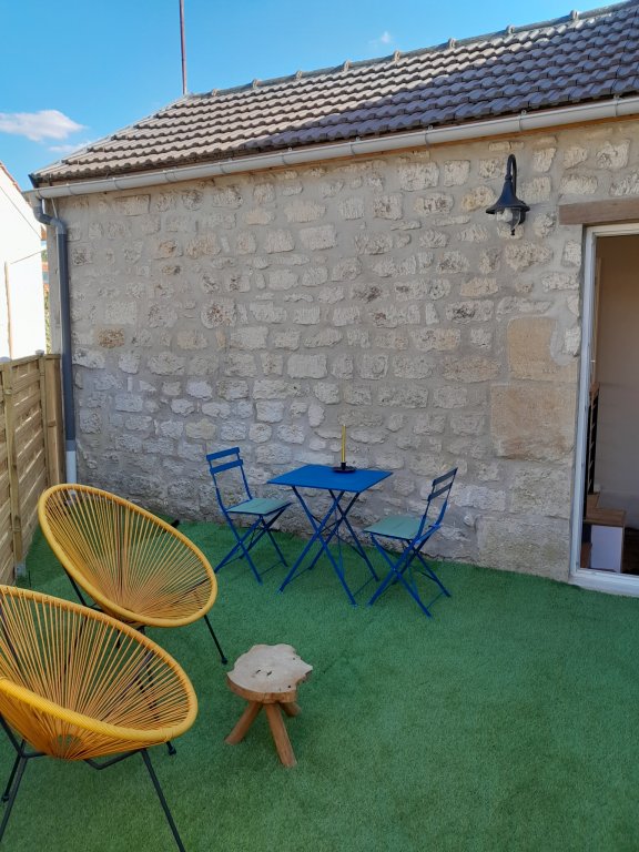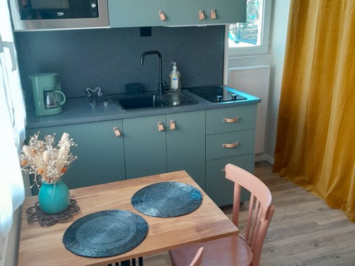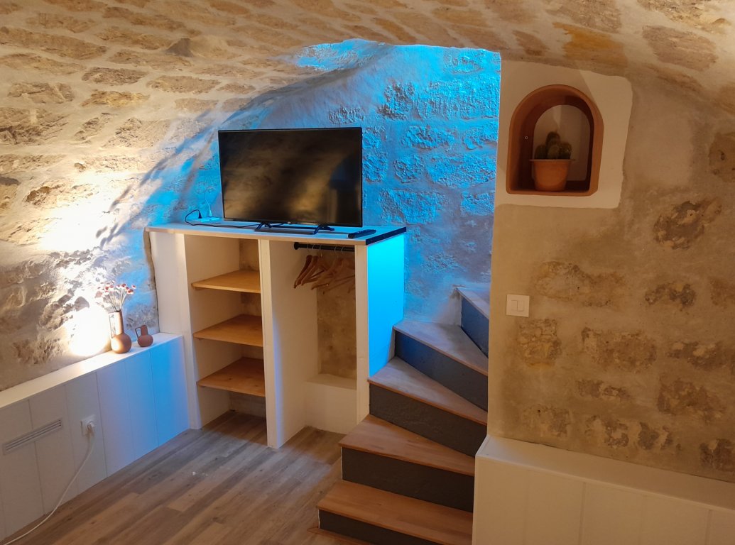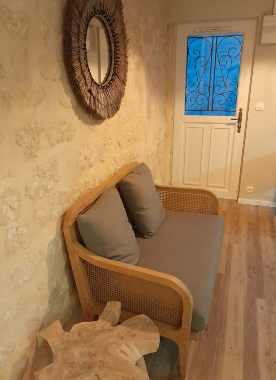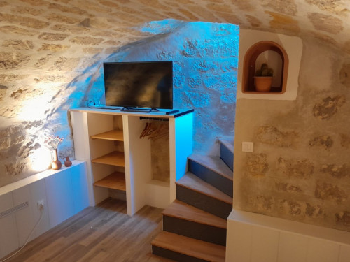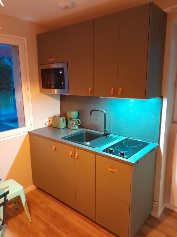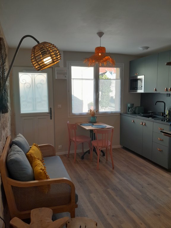 Notre gîte, refait à neuf, comprend une entrée indépendante, une kitchenette toute équipée, un coin salon canapé TV, une salle de bain avec douche . La chambre, pleine de charme et atypique, se situe en souplex et dispose d'un lit double 160x200 cm et d'une télévision. Terrasse de 20 m² attenante.