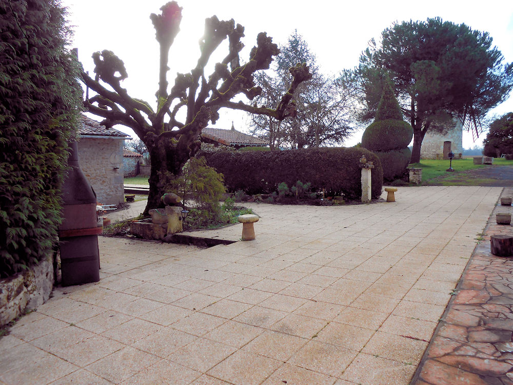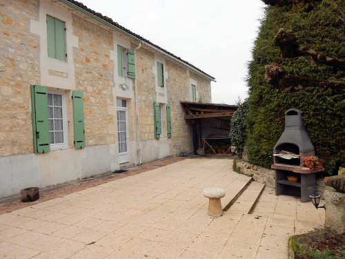 À l'extérieur terrasse couverte avec salon de jardin et barbecue.