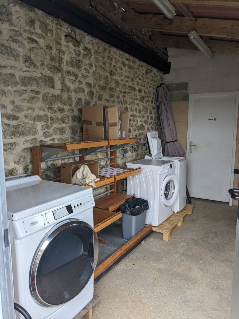 Lave-linge, sèche-linge, fer + table à repasser sont à disposition dans les communs