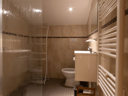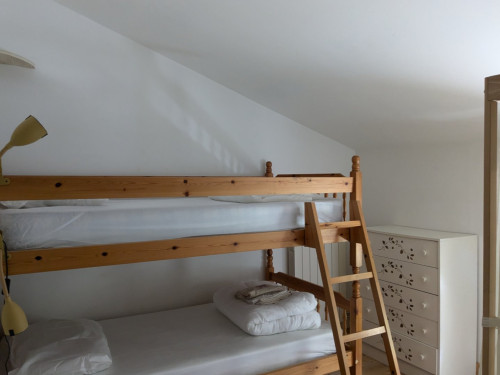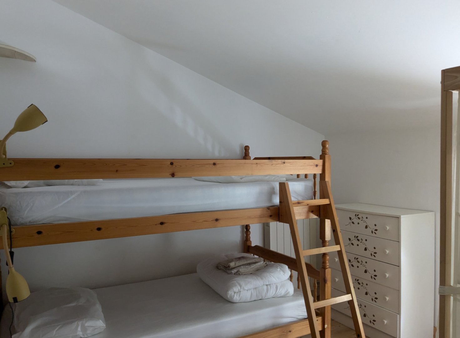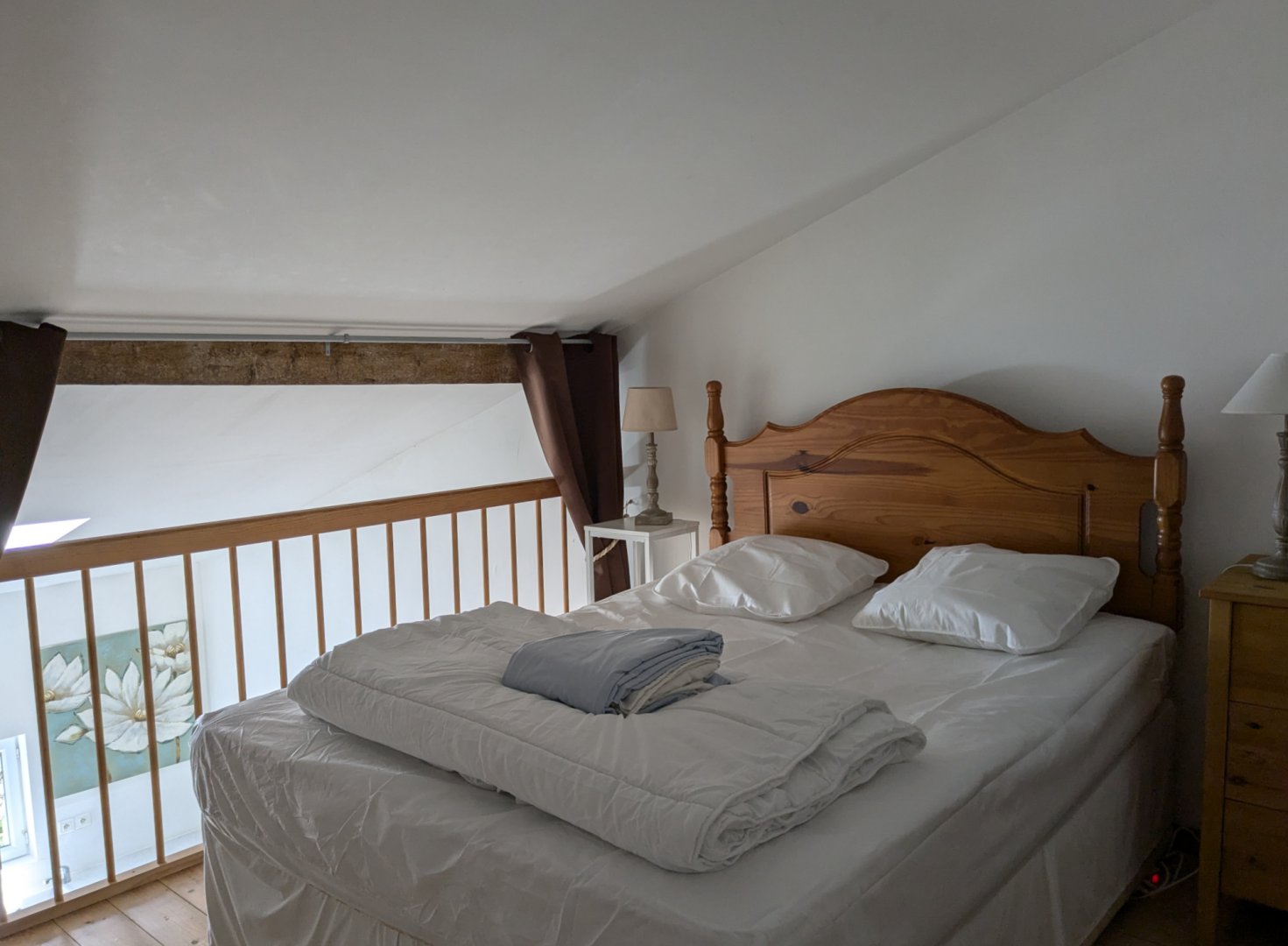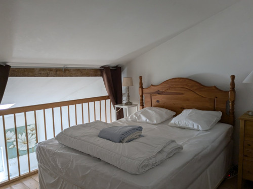 À l'étage, une chambre-mezzanine avec 1 lit de 150 cm et une chambre avec 2 lits de 90 cm, une salle d'eau (douche italienne-lavabo-WC).