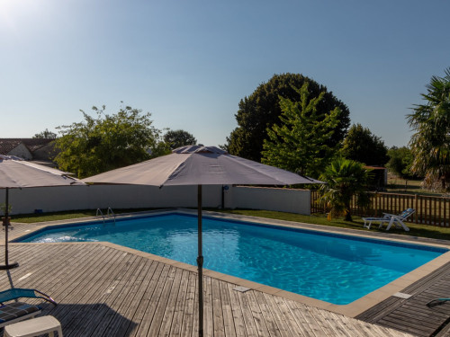 La piscine (12 x 6 m - chauffée de juin à septembre) et un bel espace vert (1 hectare) avec jeux (ping-pong, balançoires, badminton, pétanque, etc.) sont à partager avec les autres vacanciers.