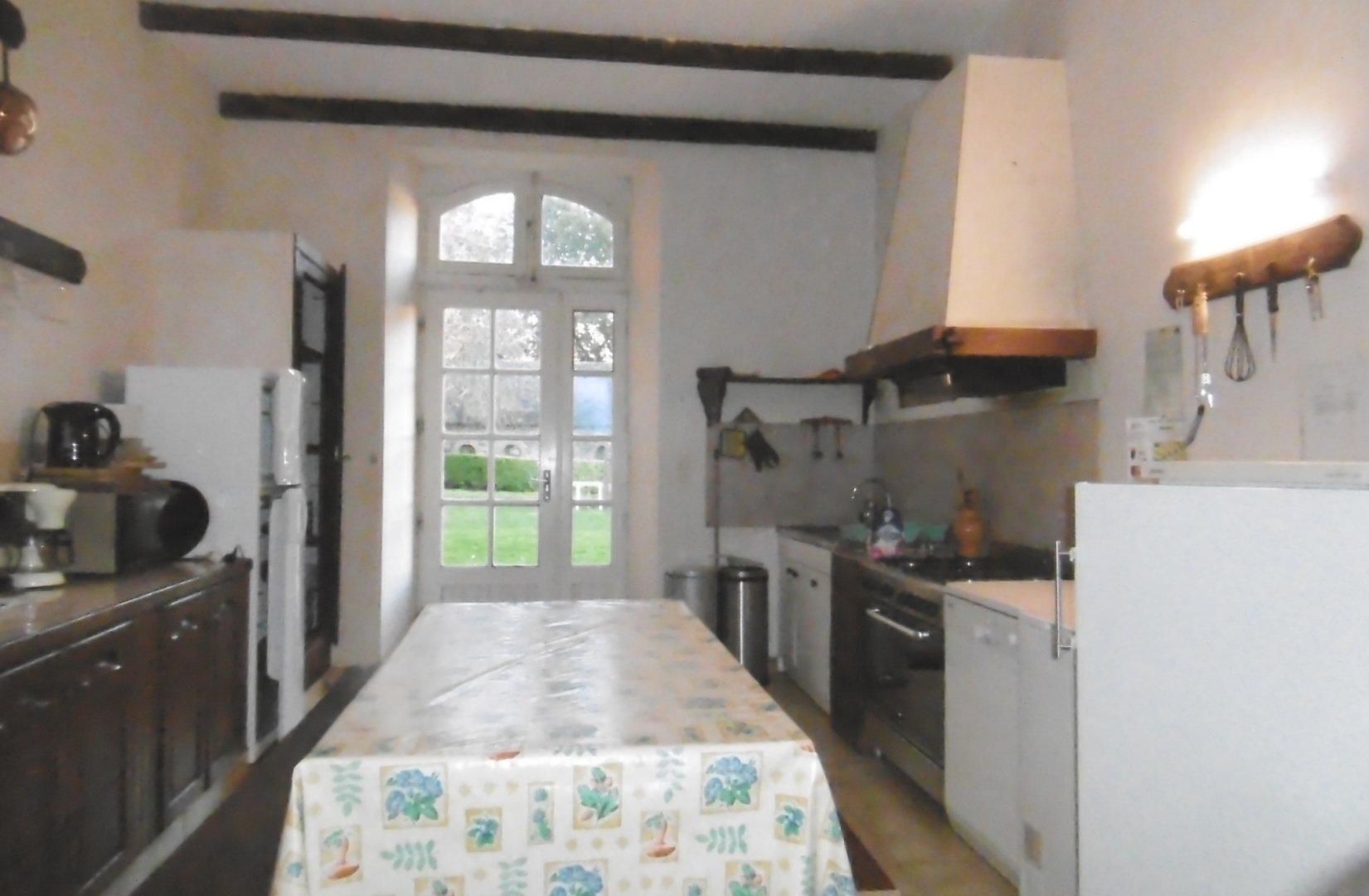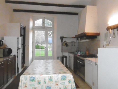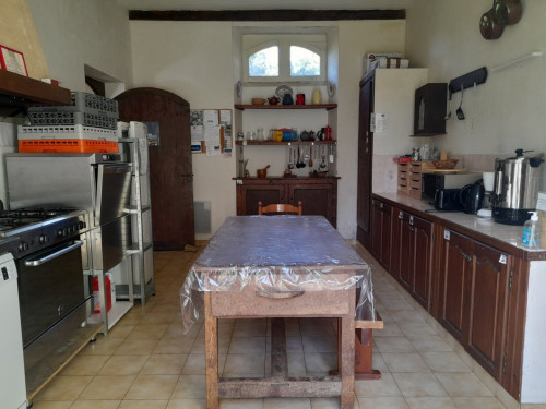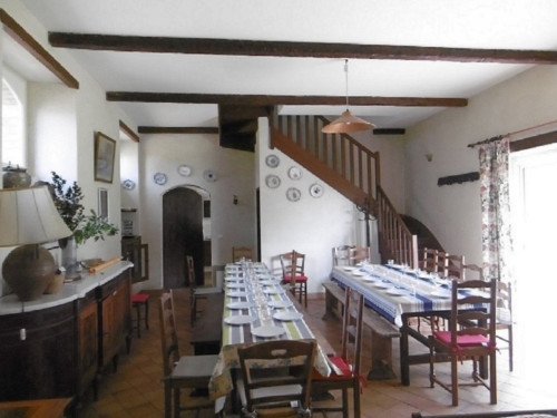 Salle de réception rustique(aménagée dans l'ancienne salle des calèches) et non chauffée. Un salon/ salle à manger chauffe quant à lui de 48 m2 permet également de rassembler pour les fêtes et événements.