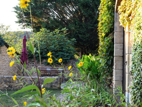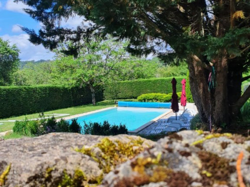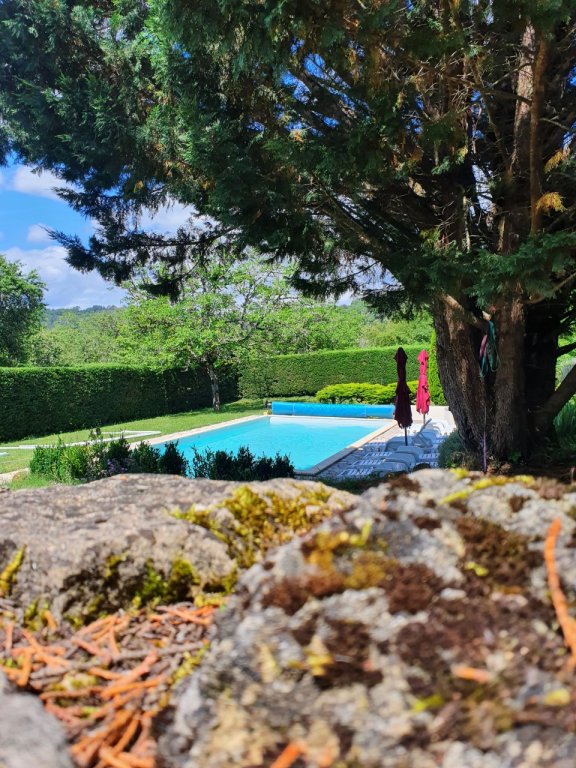 Autour de la piscine privée, un jardin généreux se prête merveilleusement aux soirées de plein air, tandis que la maison, équipée du chauffage central, réchauffe de sa large cheminée les mois les plus frais.