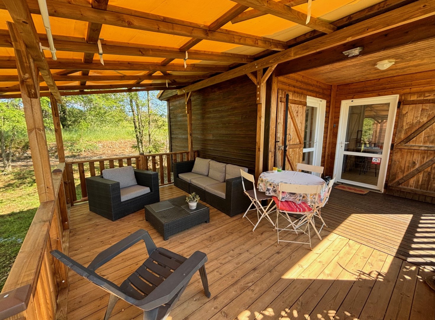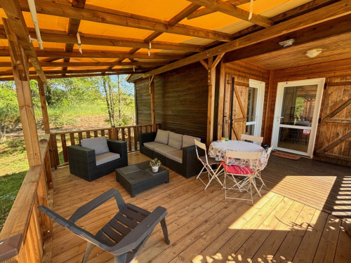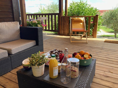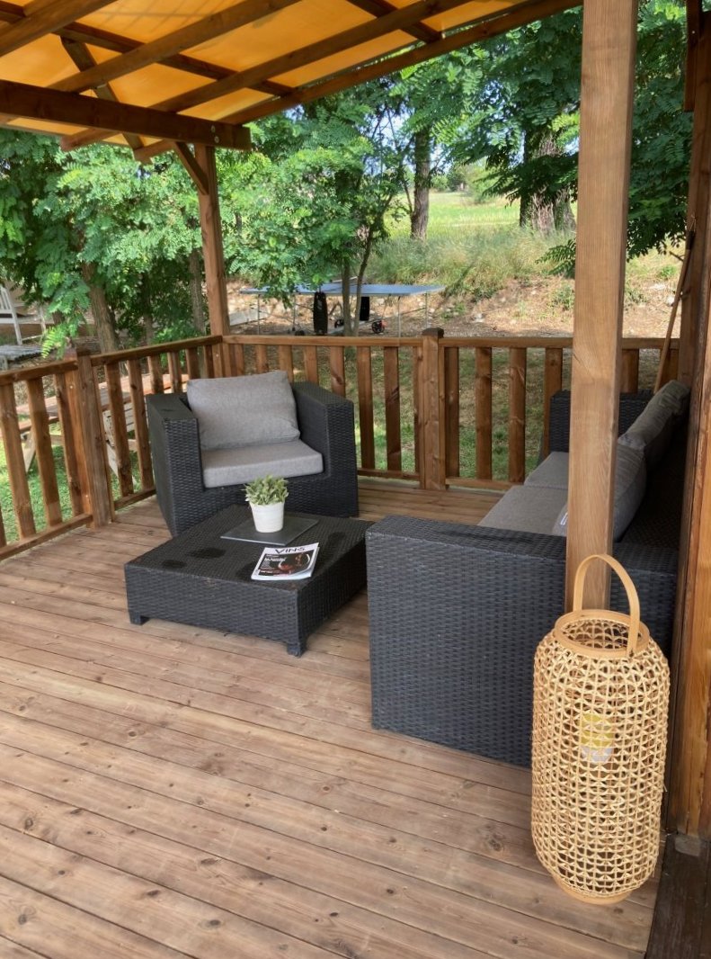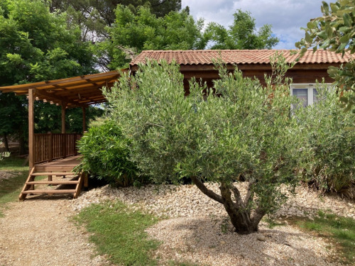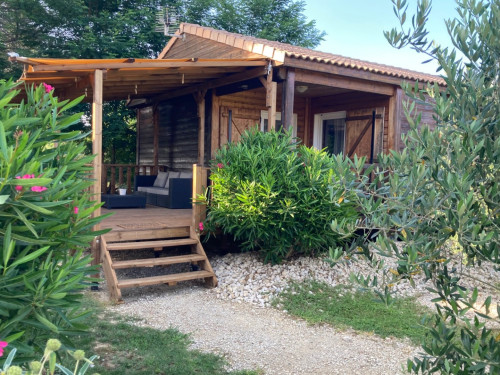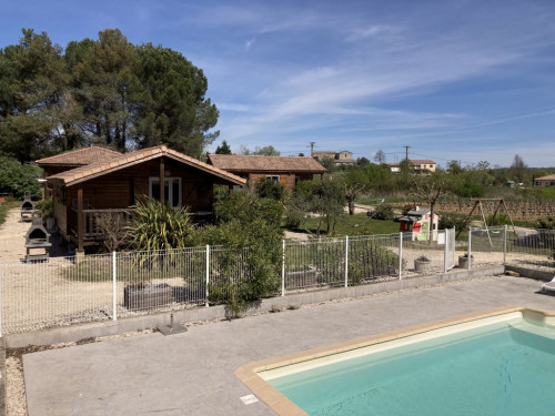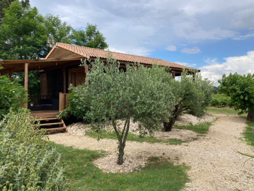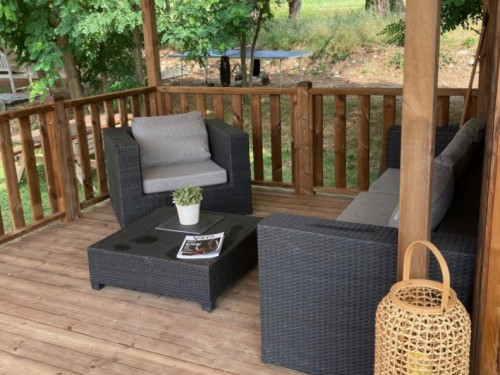 Cécile will welcome you in a family atmosphere, all year round in 3 fully equipped chalets, with swimming pool. Price on request depending on the number of people. The chalets are located in Ruoms, between vineyards and rivers in the South of Ardèche, 2.5 km from the shops. Chalet Merlot, 49m², with two terraces, one of which is 20m² with outdoor sofa, barbecue, garden furniture.