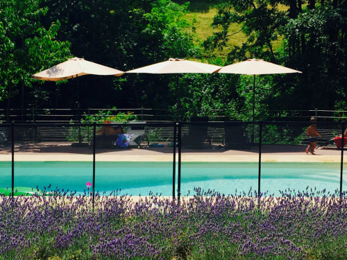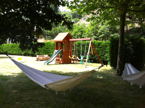 Piscine, baignade en rivière, tennis de table et aire de jeu.