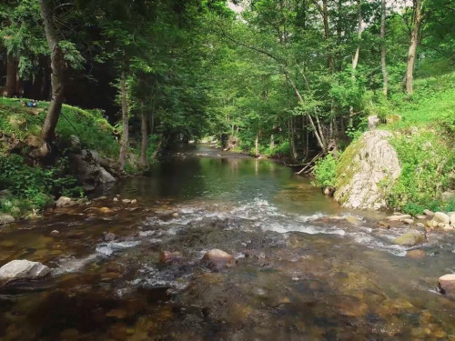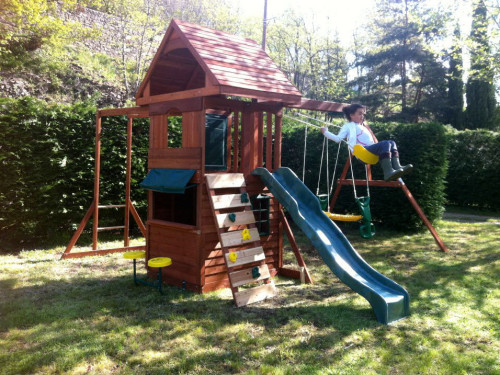Piscine, baignade en rivière, tennis de table et aire de jeu.