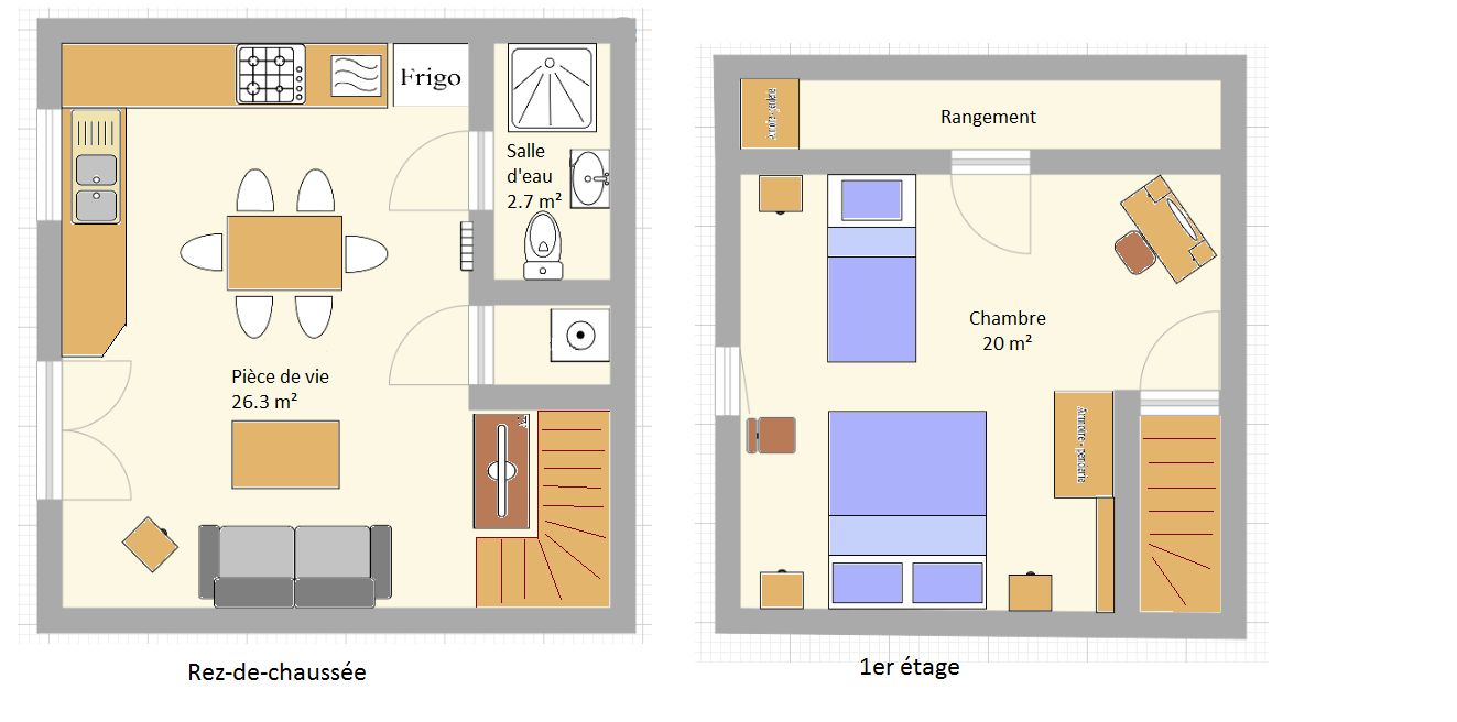 Gîte rural de 49 m² (rez-de-chaussée, 1er étage)