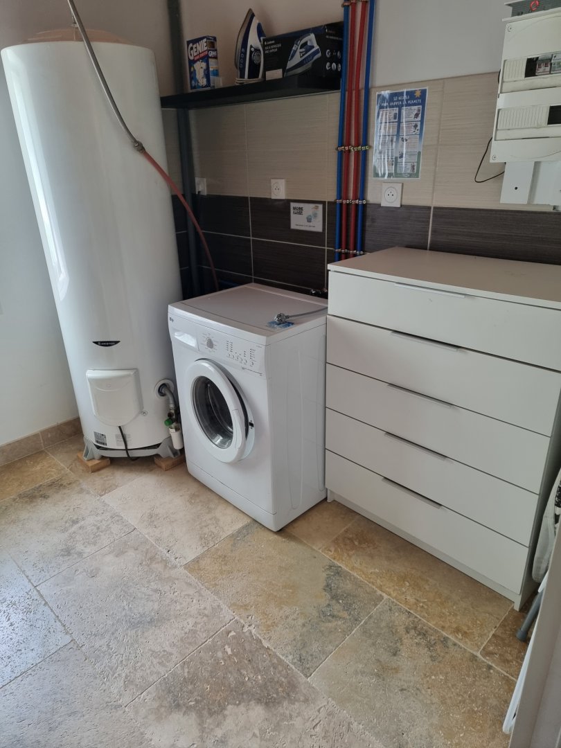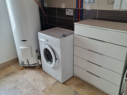 - Cellier et WC indépendant : machine à laver, étendoir à linge, aspirateur, table et fer à repasser