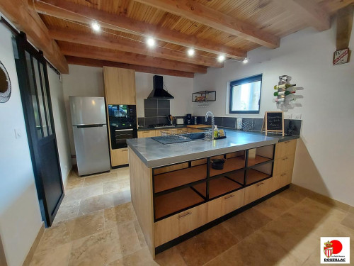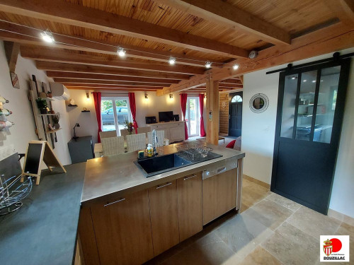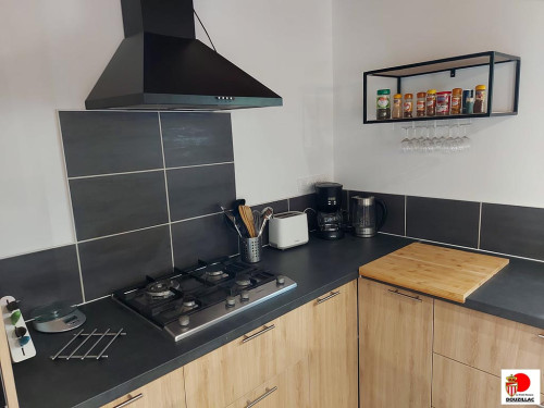 - Cuisine ouverte équipée : réfrigérateur, plaques de cuisson, micro-ondes, four, bouilloire, grille-pain, cafetière à filtre, ustensiles de cuisine, vaisselle, lave-vaisselle