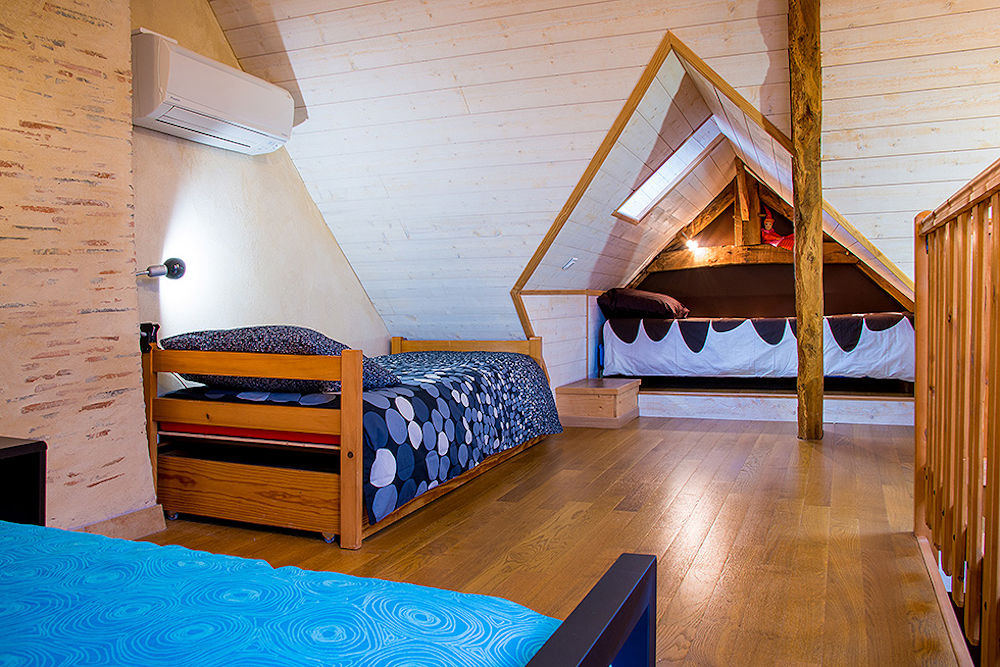 • Le Pivert peut accueillir de 4 à 10 personnes et 1 bébé, comprenant 3 chambres, une cuisine, un salon, une salle de bain.