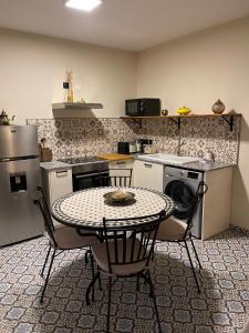 The riad provides guests with a terrace, pool views, a seating area, a flat-screen TV, a fully equipped kitchen with an oven and a microwave, and a private bathroom with shower and a hair dryer. A toaster, a fridge and stovetop are also featured, as well as a coffee machine and a kettle. At the riad, the units have bed linen and towels.