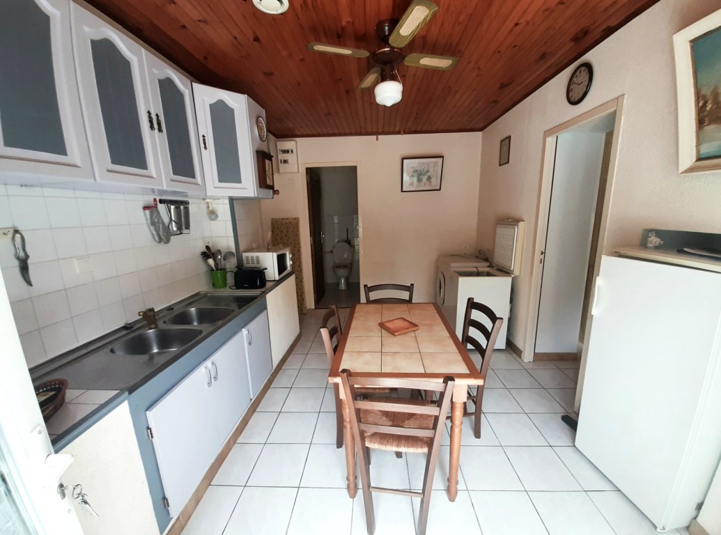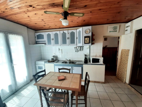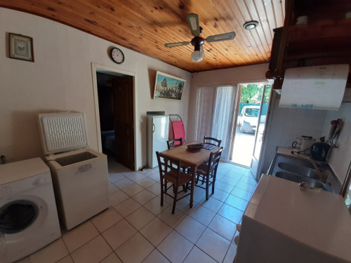 - une cuisine équipée (16 m²) avec four, cuisinière à gaz, micro-ondes, frigo et congélateur 100 litres, grille pain, cafetière, bouilloire électrique, lave linge, fer à repasser + table, …