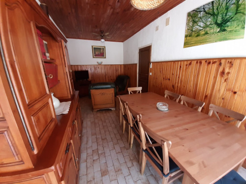 - une salle à manger, salon (25 m²) avec canapé, fauteuil, TV TNT