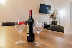 Diese Ferienwohnung mit Klimaanlage ist versehen mit 2 Schlafzimmern, Flachbild-TV, einem Essbereich, einer Küche mit einem Kühlschrank und einem Wohnzimmer.