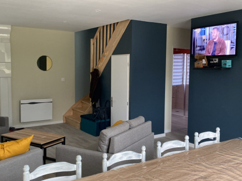 This renovated accommodation of 85 m², adjoining the La Margotine gîte for 12 people, provides you with a beautiful space for your meals, both inside and outside. A pleasure also for children, where games await them and a field!