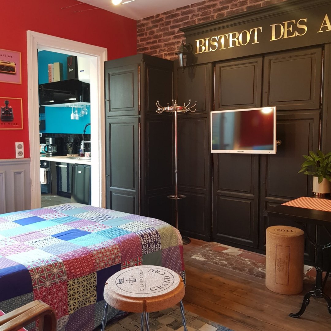 Situés dans nos 2 immeubles anciens côte à côte à 300 mètres de la gare & de la place d'Erlon, place centrale de Reims. Stationnement facile dans notre rue.