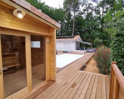 Featuring a seasonal outdoor swimming pool and views of garden, Les Chalets du Golf de Biscarrosse is a recently renovated chalet set in Biscarrosse, 1.9 km from Ispe Beach. Each accommodation at the 4-star chalet has pool views, and guests can enjoy access to a sauna and a hot tub. There is a sun terrace and guests can make use of free WiFi, free private parking and an electric vehicle charging station.