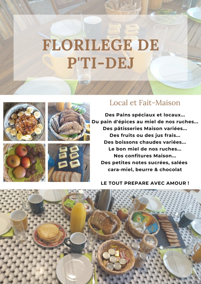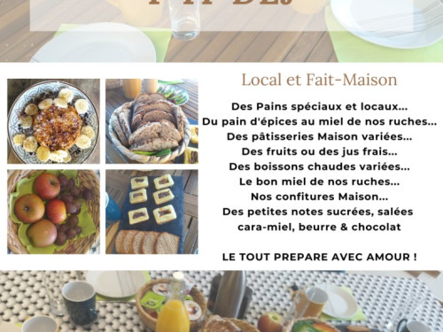 Profitez du petit-déjeuner élaboré à partir de produits locaux et fait maison. Vous pourrez notamment y déguster nos produits de la ruche (miel, pain d'épices).