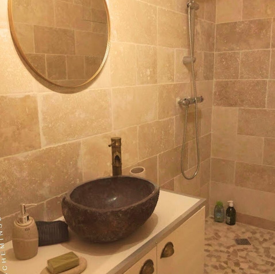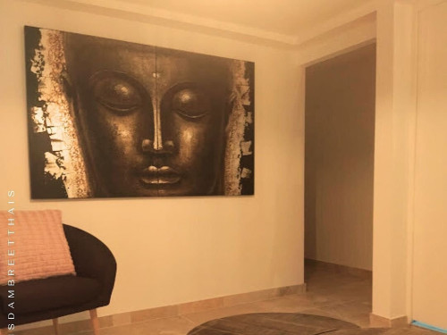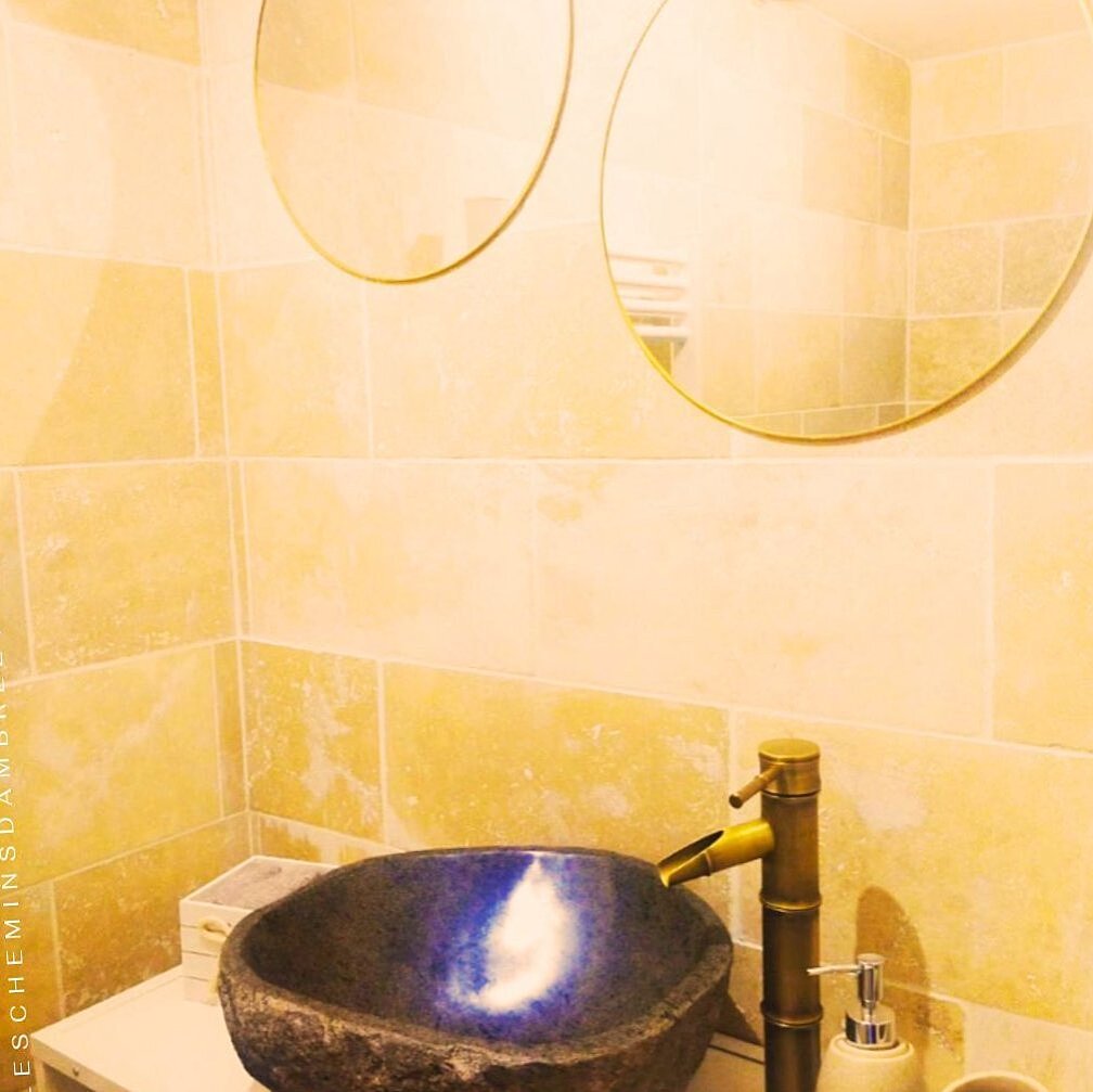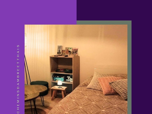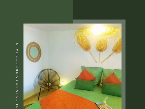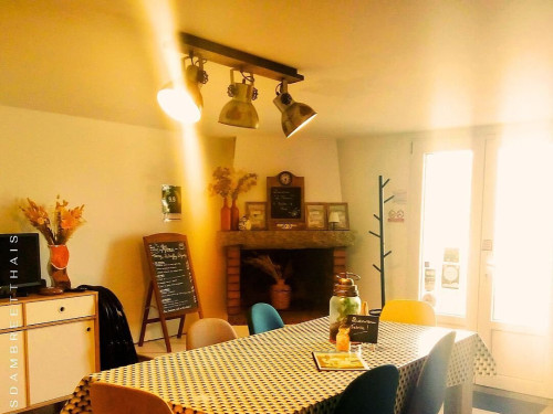 3 chambres : Chambre Thaïs + Chambre Ambre + chambre A la croisée des Chemins + 2 salles d'eau + 2 wc + salon avec clic-clac + pièce de vie avec cuisine et cheminée + espace repas attenant à l'une des chambres.