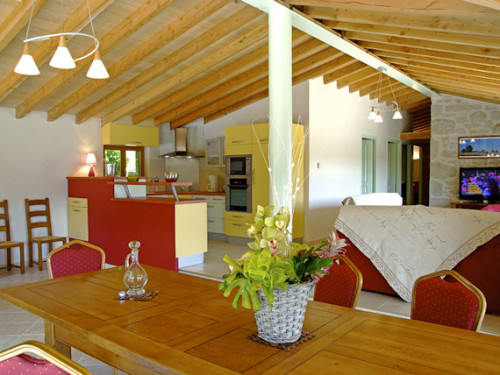 3 gîtes, dont un avec piscine privée plein Sud, offrent la possibilité de location d’un couple à plus de 10 personnes, grande bâtisse en pierre du pays