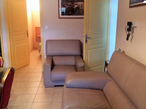 Séjour cuisine : canapé, télévision, chambre lit 140, salle d’eau, WC.