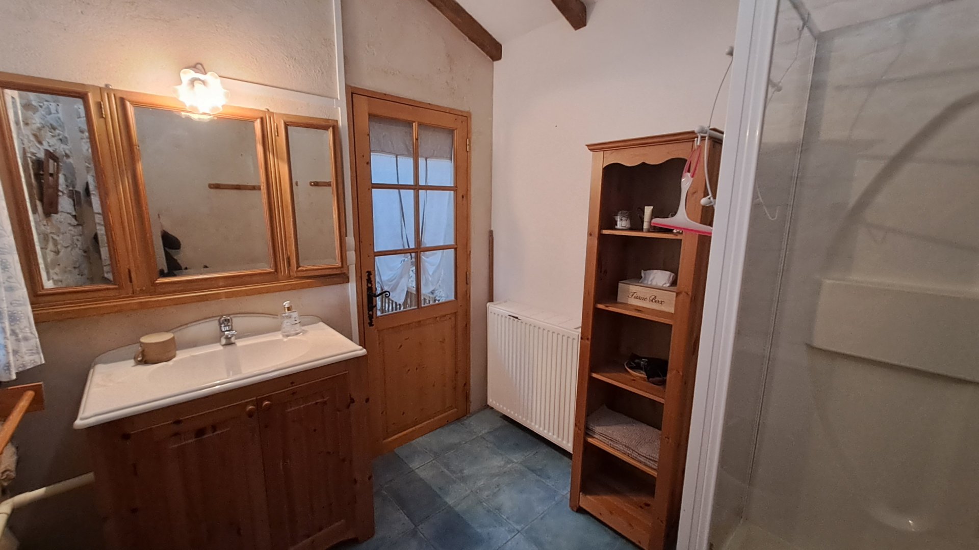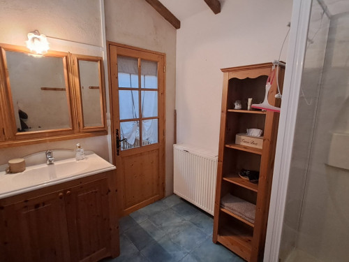 À l'étage (escalier step by step) : chambre, salle d'eau avec wc.