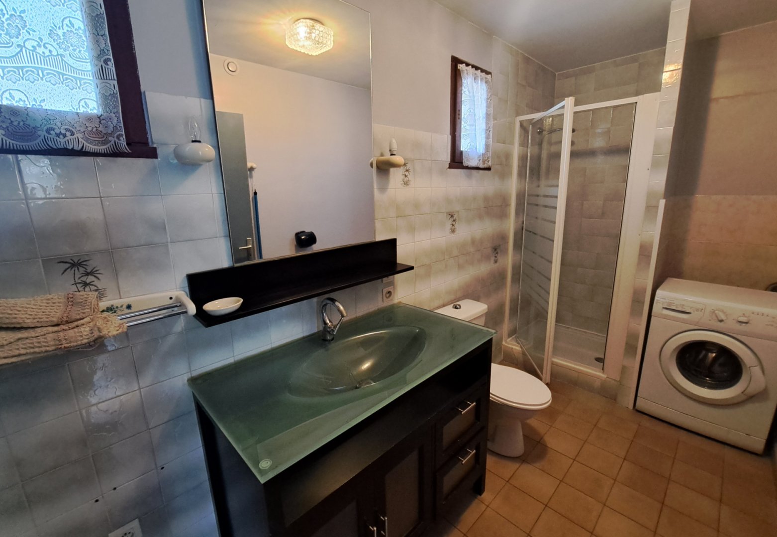 - un WC et une salle d'eau avec machine à laver, fer et table à repasser