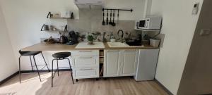 Cette maison de vacances avec climatisation se compose de 1 chambre, d'un salon, d'une cuisine entièrement équipée avec un réfrigérateur et une machine à café, ainsi que de 1 salle de bains avec une douche et un sèche-cheveux. Des serviettes et du linge de lit sont disponibles.