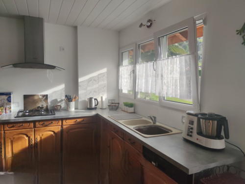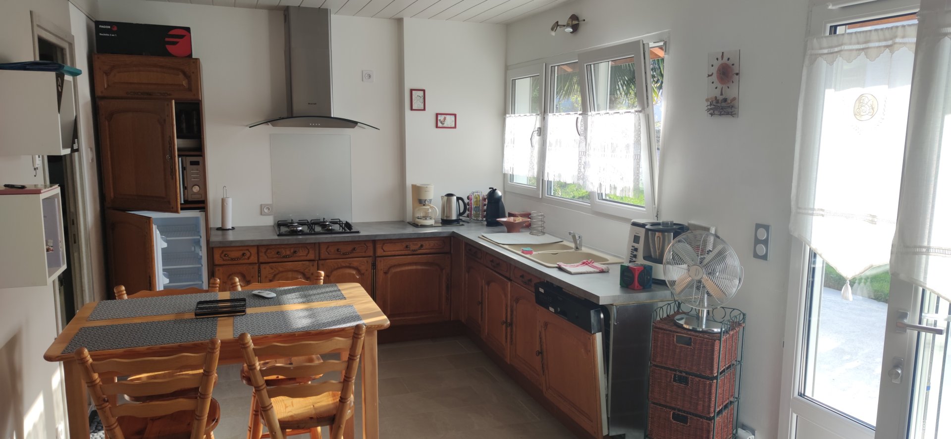 Cuisine toute équipée : lave-vaisselle, réfrigérateur et congélateur, four combiné four micro-ondes, plaque de gaz 4 feux, hotte aspirante, cafetière et machine à café dosette Dolce gusto, bouilloire, grille-pain. Appareil 3 en 1 (raclette, fondue, grillade)