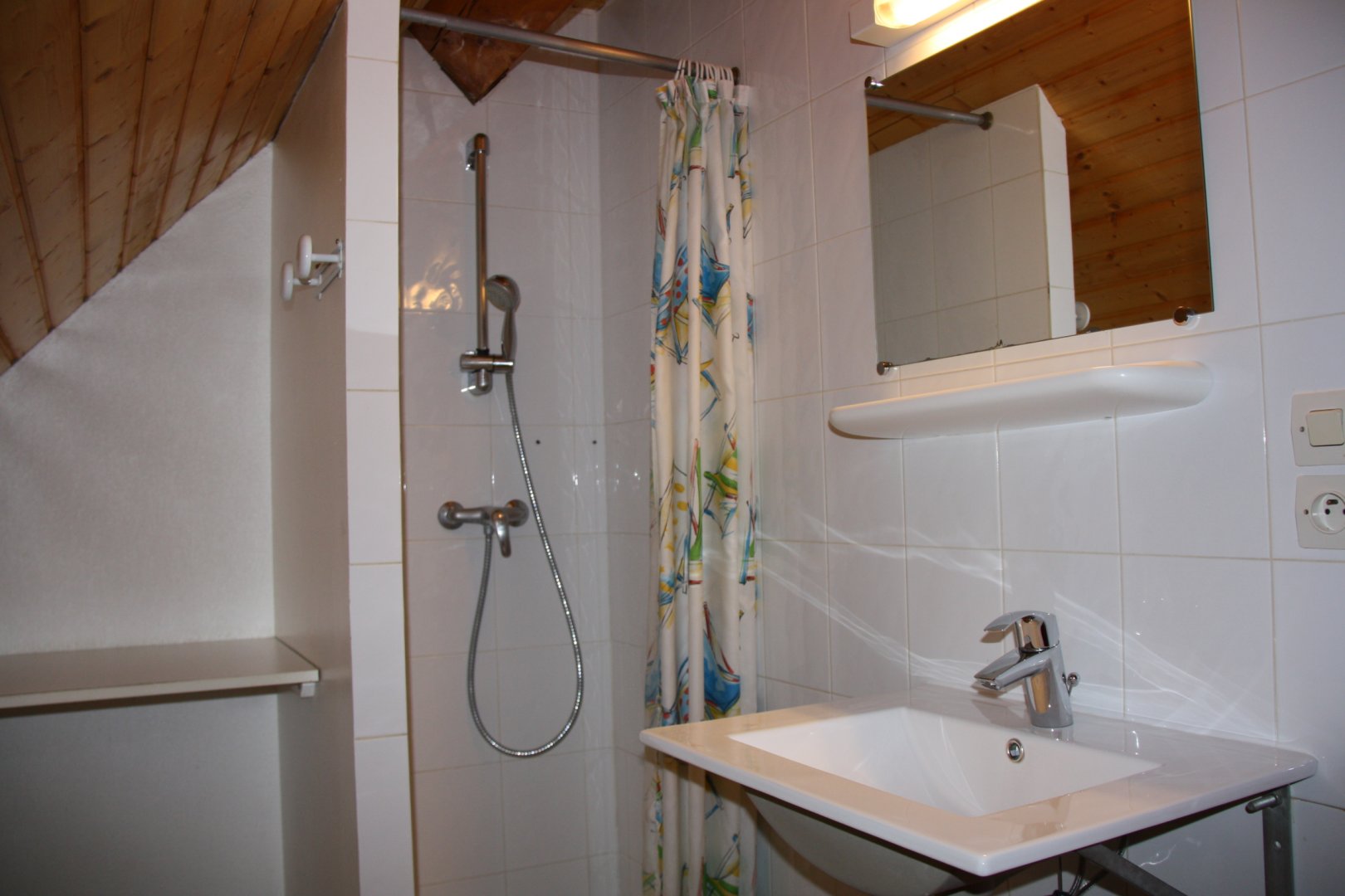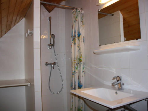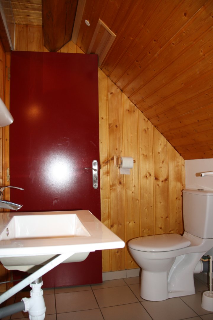 À l’étage : 2 chambres, 1 avec un lit double et 1autre avec 4 lits simples, une salle d’eau avec WC, un cagibi de rangements.