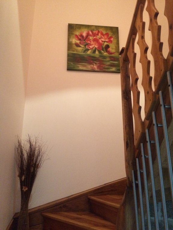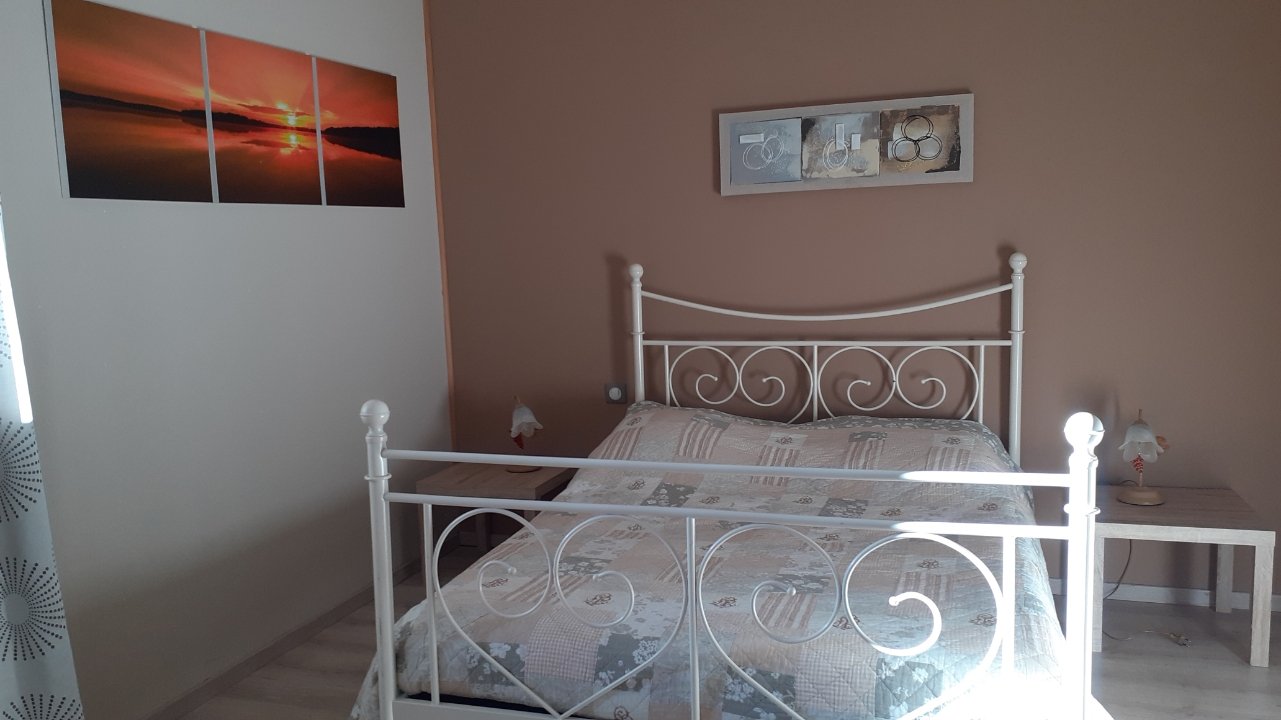 - 1er étage : deux chambres (lits deux places), salle de bain (baignoire balnéo) et WC