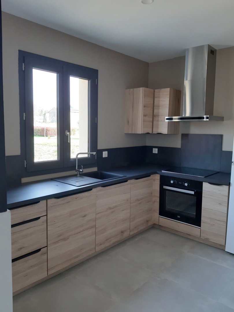 Cuisine toute équipée : lave vaisselle, table à induction, micro-ondes, cafetière Senséo, bouilloire, grille pain, combiné réfrigérateur congélateur, lave linge...
