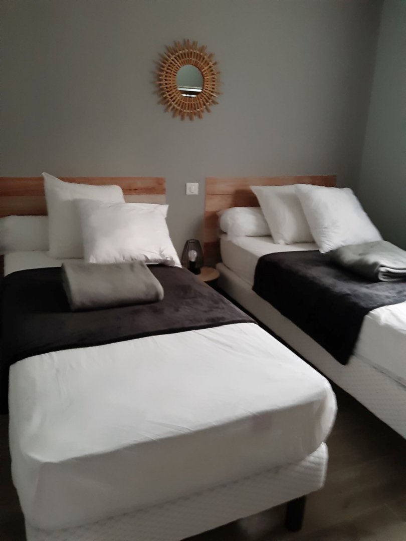 2 chambres : 1 avec 1 lit 160 x 200 1 avec 2 lits 90 x 200