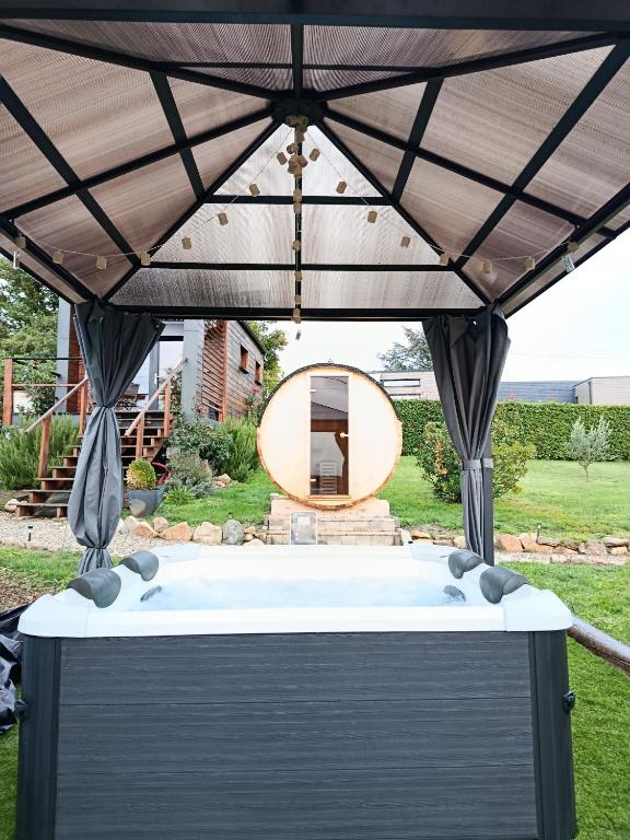 Proposant un restaurant, l’hébergement Lodge climatisé avec vue panoramique se situe à Saint-Sorlin, à respectivement 41 km, 41 km et 42 km de ces lieux d’intérêt : Gare de Lyon-Perrache, Eurexpo et Musée Miniature et Cinéma. Cet hébergement avec climatisation est installé à 37 km de : Musée des Confluences. Vous pourrez profiter d'un parking privé disponible sur place et d'une connexion Wi-Fi gratuite.