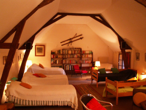 • à l’étage : une chambre à 2 lits, un dortoir de 5 lits, coins lecture et jeux