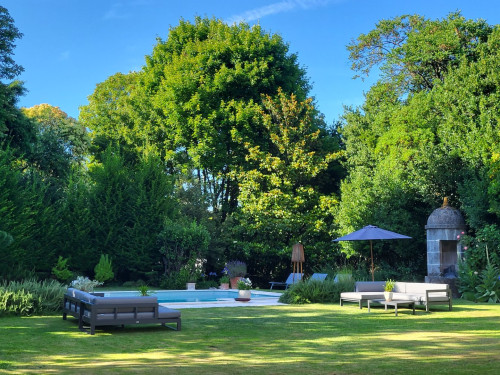 Au jardin, vous profiterez de la vue sur les tourelles, la terrasse avec salon de jardin, différentes tables et chaises, piscine 5m x 10m (en saison), parking (gratuit) et garage (avec supplément).