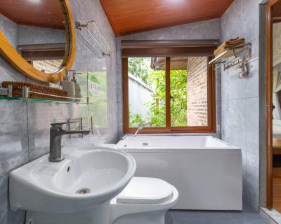 The homestay also offers a pool with a view and a hot tub for guests to relax in. The area is popular for cycling and walking tours, and free use of bicycles is available at Lotus Field Homestay. A baby safety gate is also available for guests at the accommodation.
