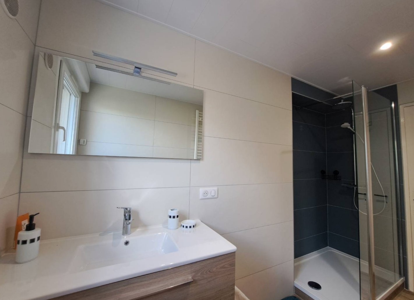 Douche à l'italienne, Vasque, Sèche-cheveux, Sèche-serviettes