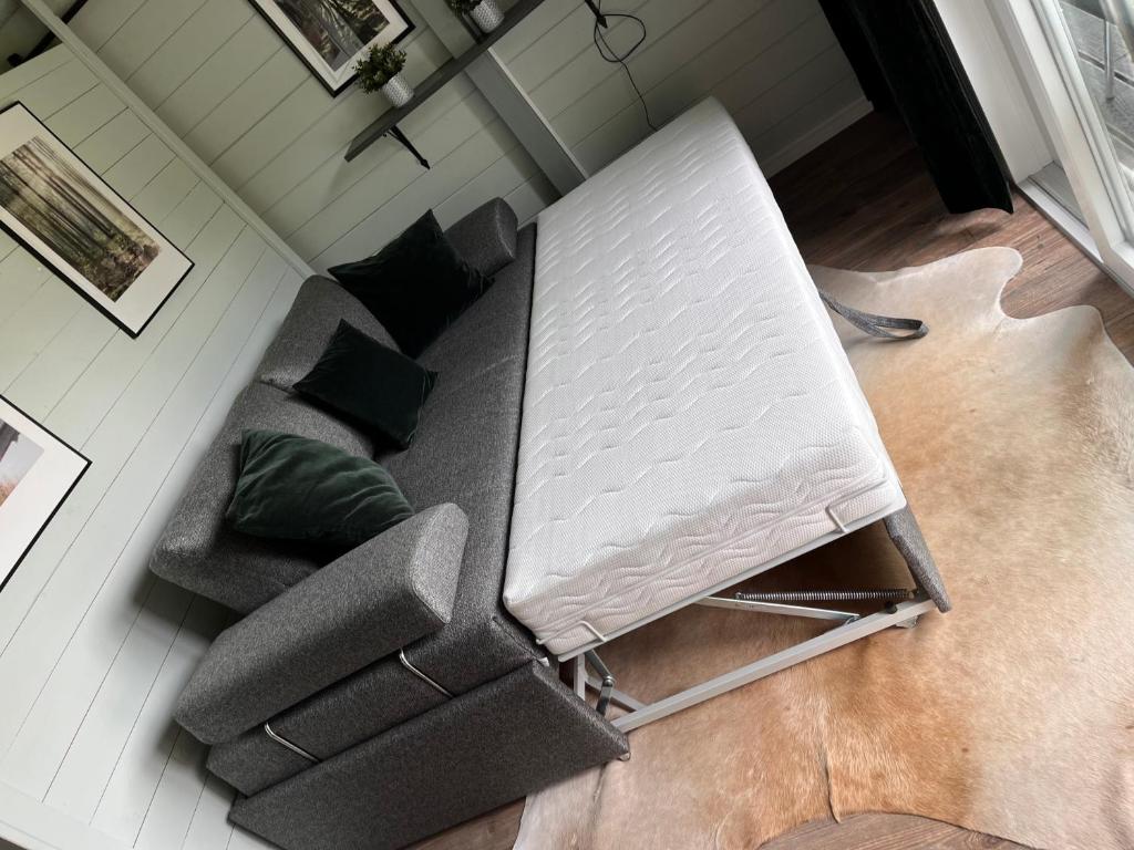 Dieses Ferienhaus hat eine Terrasse, ein Wohnzimmer und einen TV. Die Küchenzeile ist ausgestattet mit einem Kühlschrank und einer Herdplatte, einem Toaster sowie einer Kaffeemaschine und einem Wasserkocher.