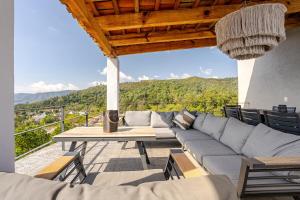 The spacious villa has 5 bedrooms, 5 bathrooms, bed linen, towels, a flat-screen TV with streaming services, a dining area, a fully equipped kitchen, and a terrace with mountain views. Guests can take in the views of the lake from the patio, which also has outdoor furniture. There is also a seating area and a fireplace.